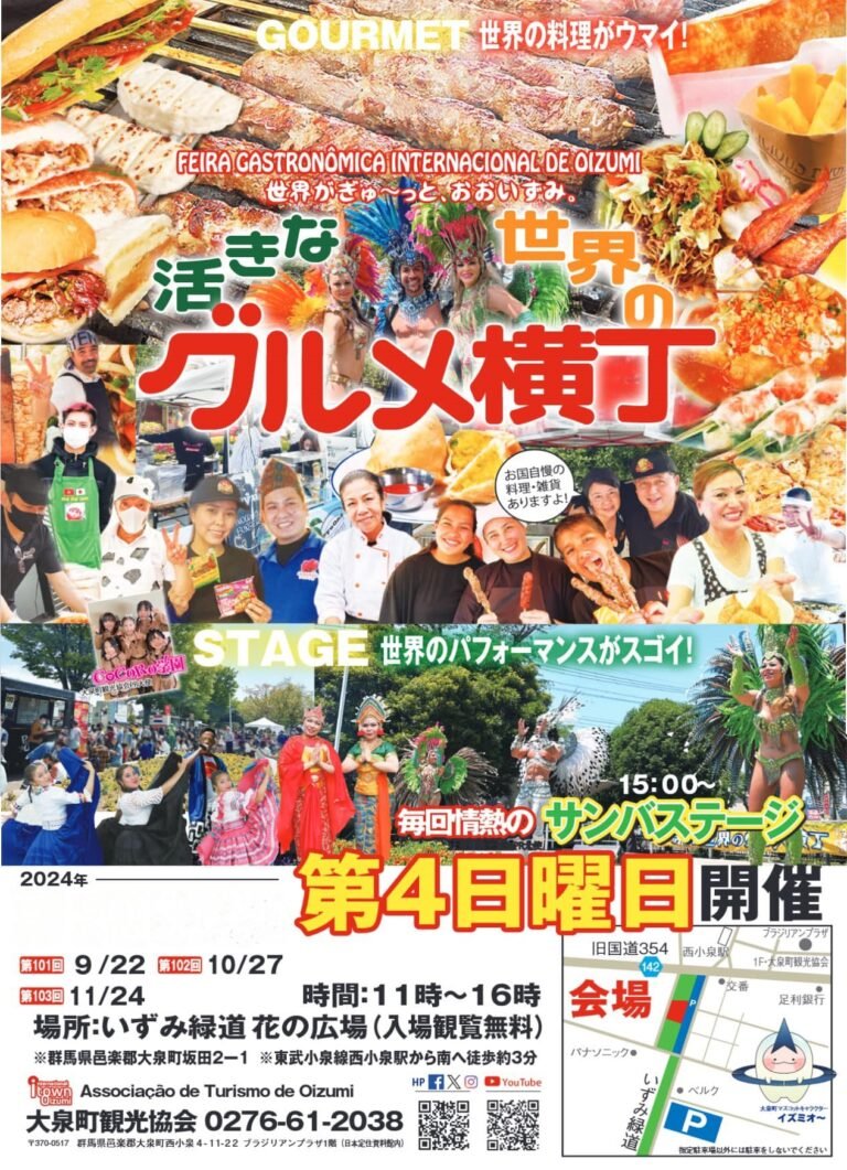 Feira Gastronômica Internacional de Oizumi (活きな世界のグルメ横丁, lê-se Ikina Sekai no Gourmet Yokocho), organizado pela Associação de Turismo da Cidade de Oizumi (Gunma) acontece todo